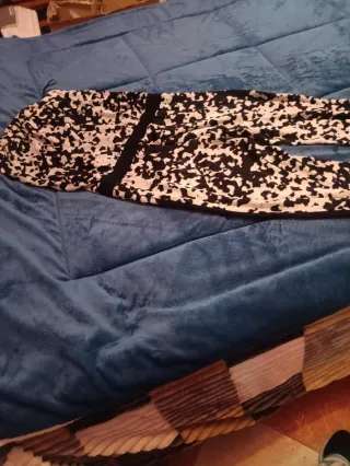 Conjunto de chándal Team Quest en buen estado. - Chaqueta con capucha y cremallera. - Pantalón largo. - Detalles en blanco y amarillo.
