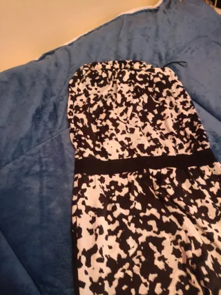 Mono sin tirantes con un llamativo estampado. - Diseño sin mangas. - Cintura elástica para mayor comodidad. - Estampado abstracto en blanco y negro.