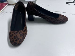 Elegantes zapatos de tacón negros con detalle de lazo. - Tacón grueso y cómodo. - Correa ajustable al tobillo. - Diseño tipo peep-toe. - Usados una vez