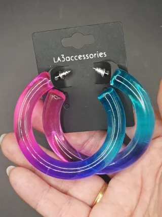 Nuevos pendientes de aros grandes, colores llamativos neones. De marca La3accesories, estan en perfecto estado. Perfectos para vacaciones de verano De cada sin fumadores, mira mi perfil, tengo muchas cosas muy bien de precio. Descuento por la compra múltiple.
