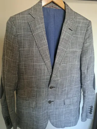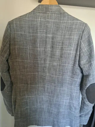 Americana de caballero con un diseño de cuadros elegante y moderno. Perfecta para ocasiones formales o informales. - Cuello solapa. - Cierre de dos botones. - Bolsillos frontales. - Puños con botones. - Parches en los codos.