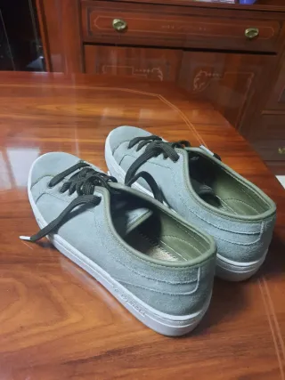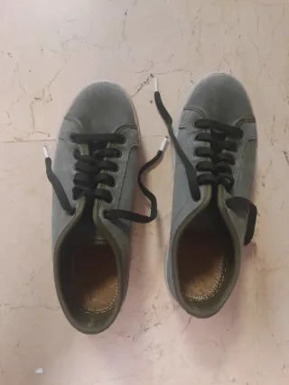 Zapatillas de la marca Natural World en color verde oliva. Perfectas para el día a día. - Exterior de ante. - Cordones negros. - Suela de caucho natural. - Eco friendly - Sostenibles