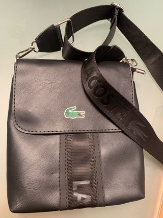 Bolso de caballero de la marca Lacoste. - Color negro. - Correa ajustable. - Logo de la marca en la parte frontal. - 20x22 cm