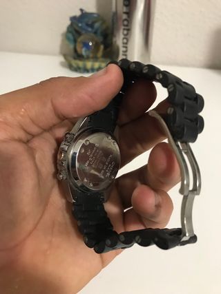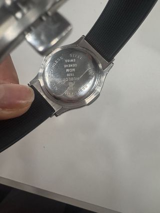 Elegante reloj Hublot con caja de acero y correa de caucho. - Diseño clásico y deportivo. - Bisel con tornillos característicos de la marca. - Ventana de fecha en la esfera.