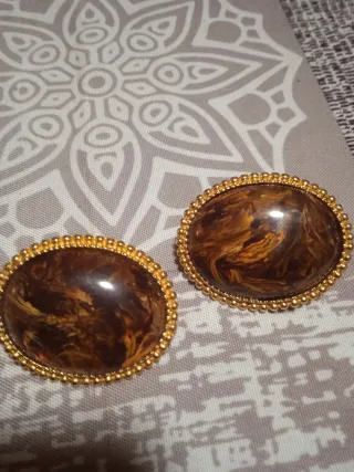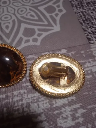 Elegantes pendientes con un diseño ovalado y un borde decorativo. - Diseño ovalado. - Detalle de cuentas doradas en el borde.