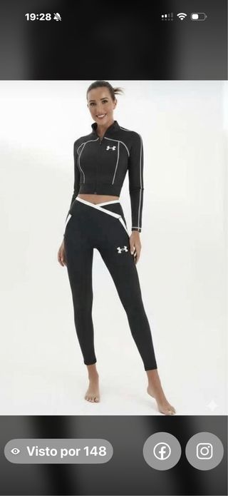 Conjunto deportivo de dos piezas. - Chaqueta deportiva con cremallera. - Leggings de talle alto. - Diseño con detalles blancos.