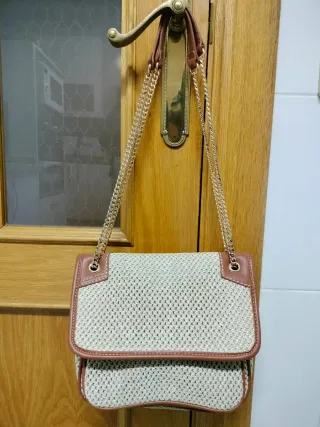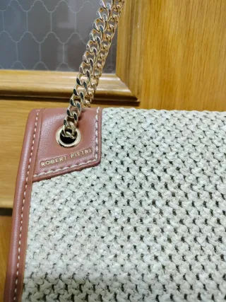 Bolso de la marca Robert Pietri con un diseño tejido. - Material exterior tejido. - Ribete y detalles en piel marrón. - Cadena dorada para llevar al hombro. Comprado en el corte inglés y sin ningún uso