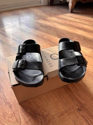 Sandalias de la marca Sommers en color negro. Diseño moderno y cómodo. - Dos tiras ajustables con hebillas. - Suela contorneada para mayor confort.