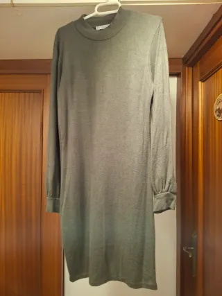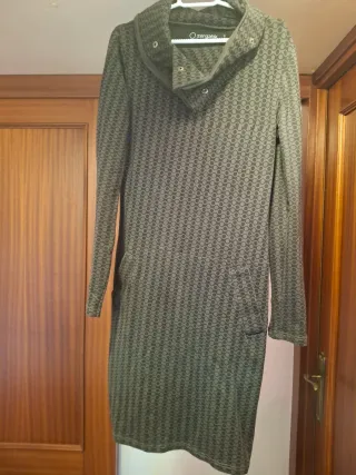 Vestido de manga larga con cuello alto. Está usado, por eso hay fotos del estado de la tela. - Color verde militar. - Tejido suave y cómodo.