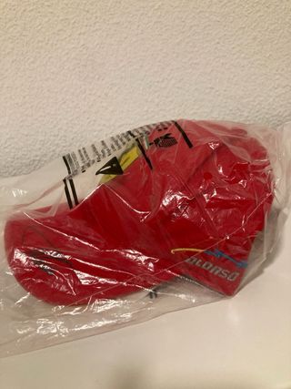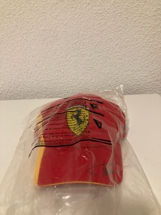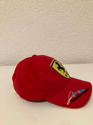 Gorra oficial de la escudería Ferrari, con el diseño de Fernando Alonso. - Escudo de Ferrari bordado en la parte frontal. - Firma de Fernando Alonso bordada en el lateral. - No usada