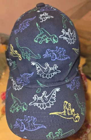 ¡Ideal para pequeños exploradores! Vendo divertida gorra para niño en color azul marino con un estampado integral de siluetas de dinosaurios en colores neón (verde, azul y amarillo). Es perfecta para proteger del sol con un estilo moderno y aventurero. Estado: Muy buen estado (poco uso). Color: Azul oscuro/Marino con dibujos multicolor. Talla: Ajustable (gracias al cierre trasero tipo snapback, se adapta a varias edades). Material: Tela de algodón resistente y transpirable. Detalles: Visera rígida y curva para mayor protección. ¡Cualquier duda, pregúntame sin compromiso! Hago envíos rápidos.