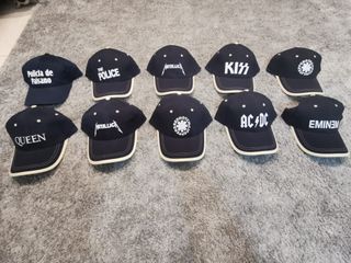 Colección de gorras estilo merchandising con diseños míticos: Queen, Metallica, AC/DC, Kiss, Eminem, Red Hot Chili Peppers, The Police y Policía de Paisano. Ideales para fans del rock, festivales, regalos o reventa. Ajustables, cómodas y con muy buen aspecto. Perfectas para completar outfit urbano, conciertos, coleccionismo o sorprender a alguien con gusto musical. Se venden juntas para facilitar y ajustar el precio, son 10 uds Siempre hay opción de envío disponible.