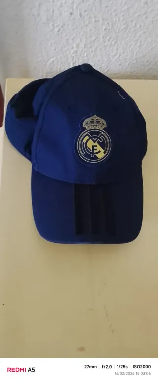 Gorra oficial del Real Madrid con el logo de Adidas. - Diseño con el escudo del club. - Tres franjas características de Adidas en la visera.