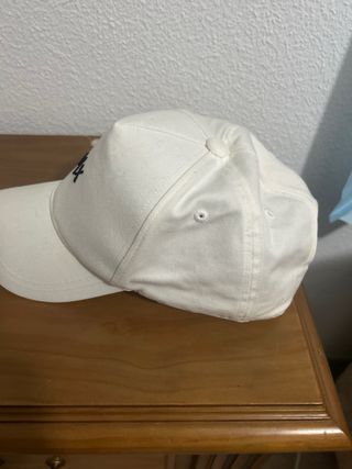 Gorra Armani Exchange (A|X) original en color beige con logo bordado en negro en la parte frontal. Diseño minimalista y elegante, muy cómoda para uso diario. Ajustable en la parte trasera mediante cierre tipo snapback. Se encuentra en muy buen estado, tal como se aprecia en las fotos. Características: Marca: Armani Exchange Color: beige / camel Logo A|X bordado en negro Ajustable en la parte trasera Estilo casual / urbano Unisex
