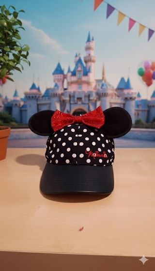 Visera de Minnie Mouse 🐭 de color negro, rojo y blanco con orejas. Talla única, ajustable. En perfecto estado.