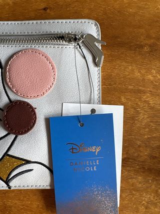 Cartera de Danielle Nicole con diseño de Gus Gus de Disney. - Orejas rosas. - Detalle de gorro verde. - Acabado dorado brillante en la ropa.