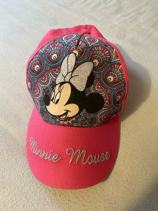 Gorra infantil con diseño de Minnie Mouse. - Color principal rosa. - Estampado frontal con Minnie y motivos geométricos. - Bordado Minnie Mouse en la visera.