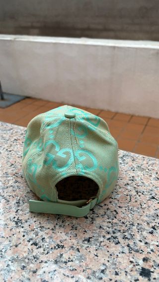 Gorra de la marca Gucci con un diseño llamativo. - Estampado GG repetido. - Color verde menta.