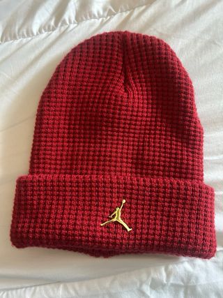 Gorro de tejido waffle con el icónico logo de Jordan. - Diseño de punto. - Logo de Jordan bordado en dorado.