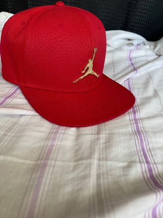 Gorra de estilo snapback de la marca Jordan. - Color rojo vibrante. - Diseño con el icónico logo Jumpman. - Talla L/XL (Adulto). - Modelo Pro Cap.