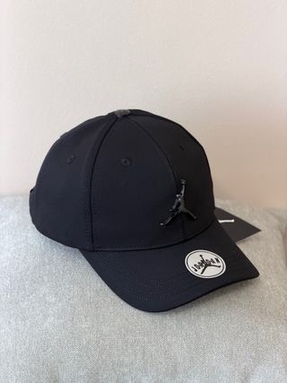 Gorra de la marca Jordan en color negro. Presenta el icónico logo Jumpman. - Logo Jumpman en la parte frontal. - Detalle de logo en etiqueta. - Diseño clásico de gorra.