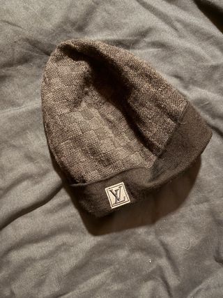 Gorro de punto Louis Vuitton con diseño Damier. - Color gris y plateado. - Detalle de logo LV en la parte frontal.