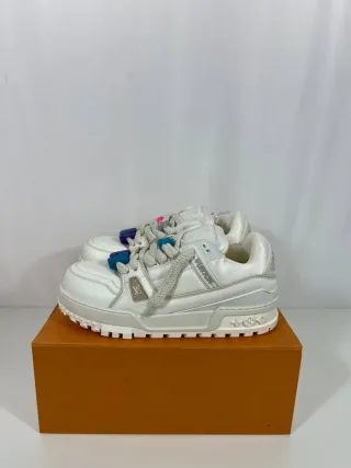 Zapatillas de diseño moderno con detalles llamativos. - Combinación de blanco y toques multicolores. - Logo de la marca visible en la lengüeta y lateral.