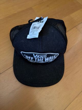 Gorra estilo trucker de la marca Vans. Es de color negro y tiene un diseño clásico. - Malla en la parte trasera para mayor ventilación. - Parche frontal con el logo Off The Wall. Nueva con etiqueta