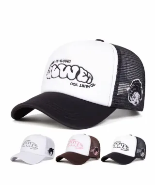 Gorra de estilo trucker con diseño bordado. - Malla transpirable en la parte trasera. - Visera con costuras. - Cierre ajustable.