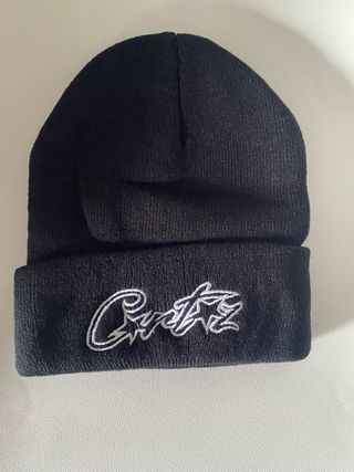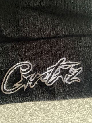 Gorro de tejido negro con un diseño bordado. - Bordado blanco con estrellas y texto. - Tejido suave y elástico. -Tala única -Viene con el embalaje original -Imitación Corteiz