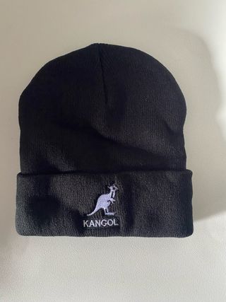 Gorro de tejido negro - Canguro bordado en blanco. -Talla única -Gorro con dobladillo -Viene con el embalaje original -Imitación de Kangol