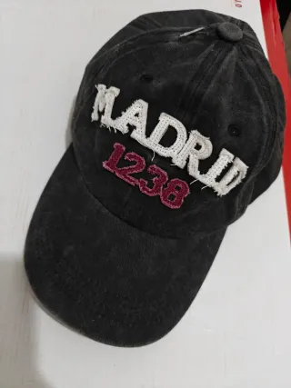 Gorra negra o gris muy oscuro bordado Madrid, sin estrenar. Hago envíos y echa un vistazo a mi perfil que tengo muchas cosas que te van a gustar. Gorra sombrero visera boina Chapela gorro. Ideal para regalar esta Navidad - Diseño con el nombre 'Madrid' y el número '1238'. - Visera curva. - Ajuste trasero con cierre de velcro ajustable a tu medida - En perfecto estado. A estrenar