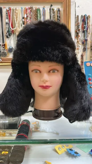 Gorro de piel de conejo auténtica, con un diseño elegante. - Piel de conejo genuina. - Combinación de colores negro y beige. Muy estiloso y calentito