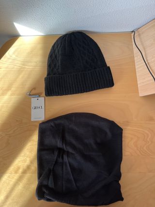 Gorro tipo pasamontañas de tejido acanalado. - Diseño con capucha. - Incluye cordones para ajustar.
