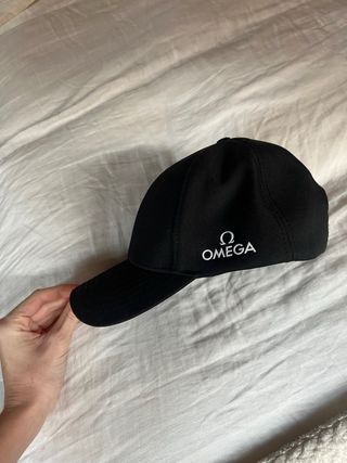Gorra de béisbol negra con el logo de Omega bordado en blanco. - Diseño clásico. - Logo de Omega en la parte frontal.
