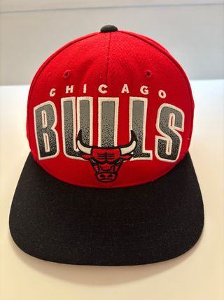 Gorra de los Chicago Bulls con diseño clásico del Año 2014. Mitchell & Ness original • “Modelo descatalogado” • “Coleccionable NBA” • “No es reedición actual” • “Calidad premium” • “Snapback Cap” - Color principal rojo con visera negra. - Logo de los Chicago Bulls bordado en la parte frontal. - Mitchell & Ness en la parte posterior - Cierre ajustable. - Excelente estado.