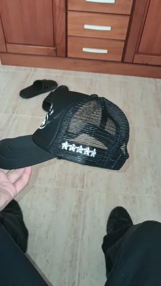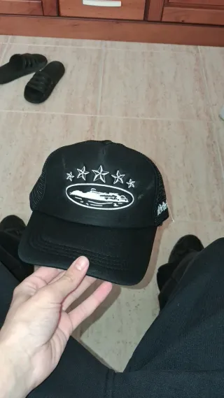 Gorra estilo trucker de la marca Corteiz. - Diseño frontal con estrellas y un paisaje. - Malla trasera para ventilación.
