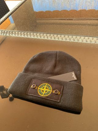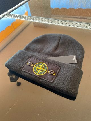 Gorro de la marca Stone Island con un diseño distintivo. - Parche frontal con el logo. - Detalle de botones en el parche.