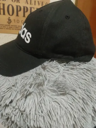 Gorra con visera, color negro, cierre trasero ajustable con corchetes. Talla única. Usada una vez.