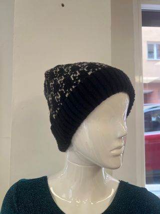 Gorro de lana en color negro con detalles de líneas plateadas. - Diseño con dos líneas plateadas. - Material de lana.