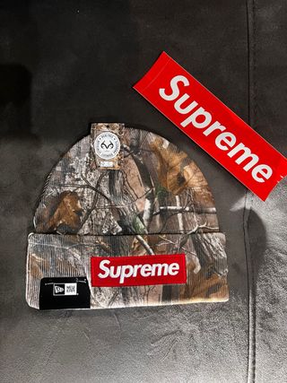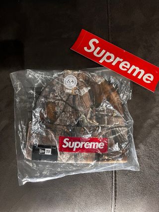 Gorro Supreme con estampado de camuflaje y logo box. - Diseño de camuflaje Real Tree. - Parche de logo Supreme. - Etiqueta New Era.