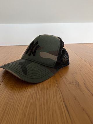 Gorra de camionero New Era con diseño de camuflaje. - Logo de los New York Yankees bordado en la parte delantera. - Paneles traseros de malla para ventilación. - Cierre ajustable en la parte trasera.