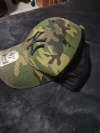 Gorra de béisbol con diseño de camuflaje. - Logo NY bordado en la parte frontal. - Visera curva. - Cierre ajustable en la parte trasera. Usada con algún pequeño desperfectos como se puede ver en las fotos pero está muy chula de ahí su precio