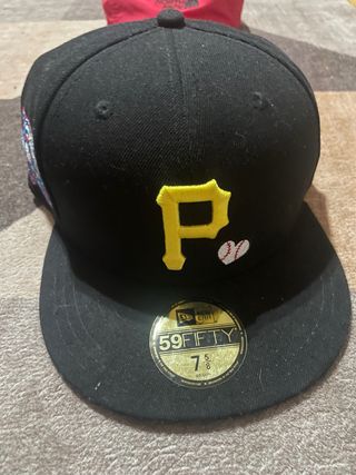 Gorra de béisbol New Era de los Pittsburgh Pirates. Diseño clásico en color negro con el logo amarillo. - Logo P bordado en amarillo. - Parche de béisbol con corazón. - Talla 7 5/8 (60.6 cm). - Visera plana. - Cierre ajustado.