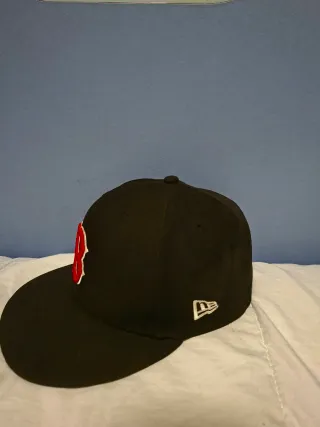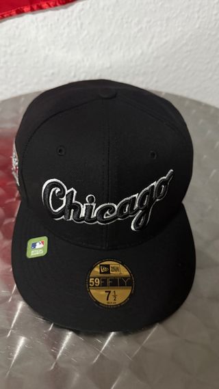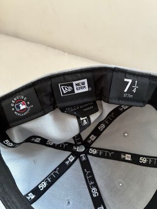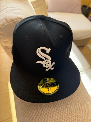 Gorra New Era 59FIFTY de color negro con el logo SOX blanco Detalles: Es original pero tiene su tiempo entre 1-2 años -Esta medio curvado, no es plana total -No viene con ninguna pegatina porque la quite - Talla de cabeza (60.6cm) 7 (5/8)