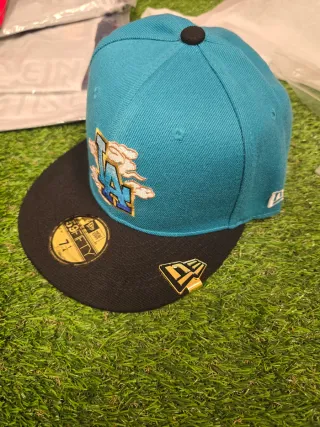 Gorra de béisbol New Era con el logo de Los Angeles. - Diseño bicolor con visera negra y copa turquesa. - Detalle bordado del logo LA. - Parche 59FIFTY en la visera. - Pin metálico de New Era.