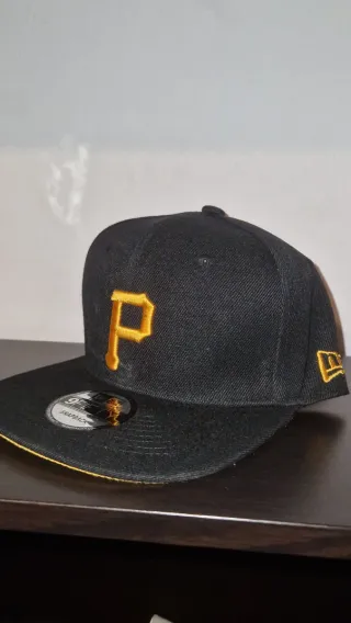 Gorra de béisbol con el logo de los Piratas. - Diseño con la letra P bordada. - Combinación de colores negro y amarillo. - Visera plana característica de la marca.