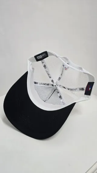 Gorra de la marca New Era en color negro. Cuenta con paneles traseros de malla para mayor ventilación. - Diseño con logo bordado en blanco en la parte frontal. - Cierre ajustable en la parte trasera.