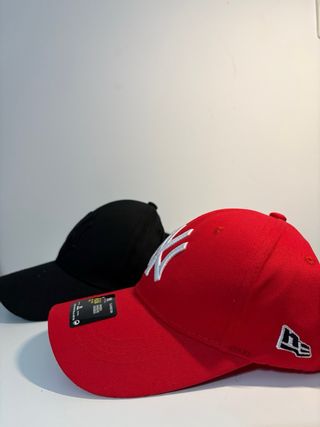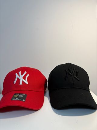 Dos gorras con el logo de los New York Yankees. - Una gorra de color rojo con el logo bordado en blanco. - Una gorra de color negro con el logo bordado en blanco. 20€ cada una