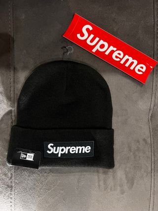 Gorro de lana con el icónico logo Box Logo de Supreme y New Era. - Diseño clásico. - Parche con logo en la parte frontal.